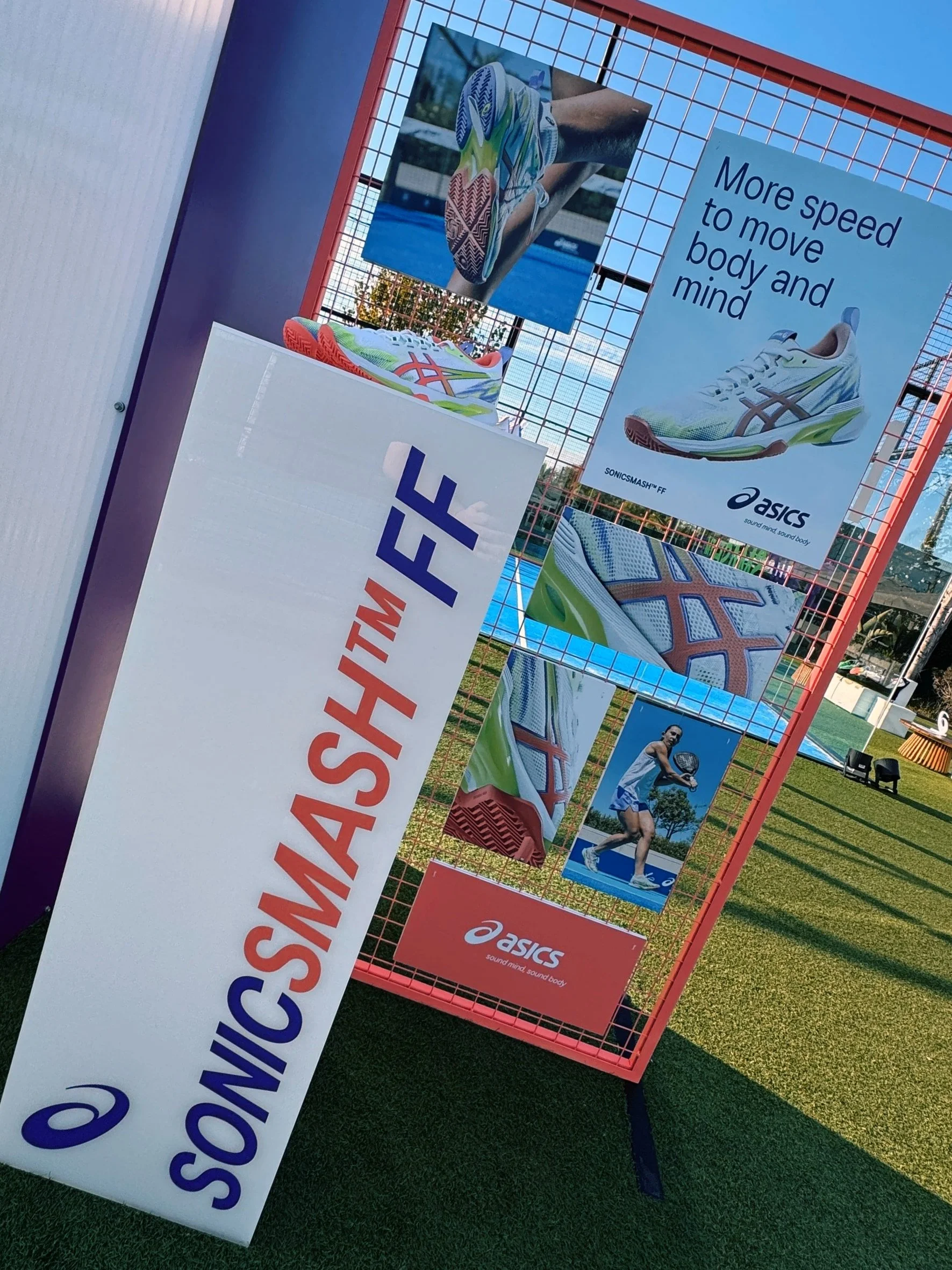 Activities included presentation and demo of the new SONICSMASH™ FF shoes, with ASICS product managers explaining the tech and design innovations. Padel challenges and informal matches where participants could test the shoes and compete in fun on-court tasks.