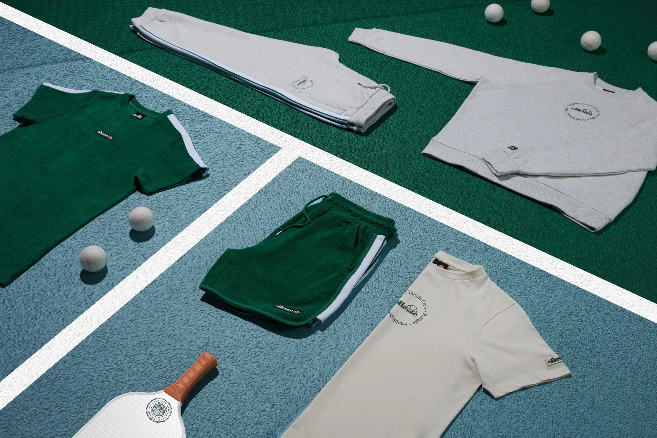 Tasked to design a mark that arches the season and lives in production and digital. Playing on a sense of nostalgia, with nods to retro, combined and driven by varsity tennis, The Ellesse Community Club is here.