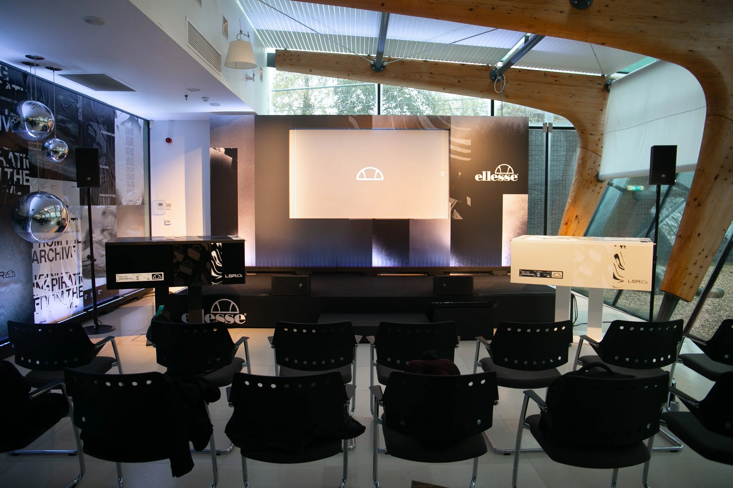 A custom LSR stand at Pitti trade show in Italy featured a fully custom animated floors & walls made from tight pitch LED screens. Long format looping footage constantly over all panels delivering a moving, visual feast of the LSR Creative.