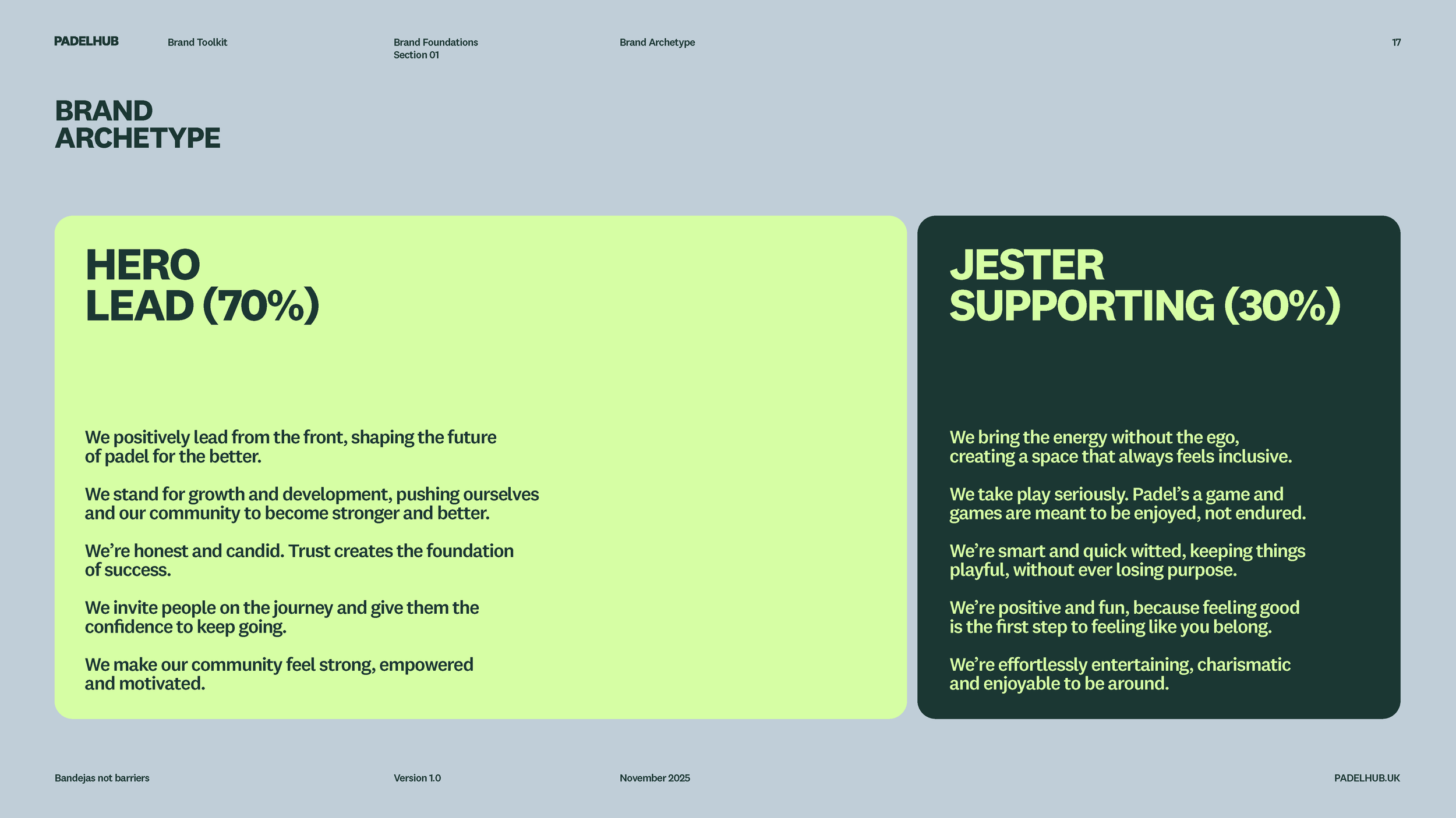 Then we worked to create a manifesto and a tone of voice that allows us to comminucate and speak with purpose and style. Building a split archetype meant that we could lead with a strong hero language but inject humour into our message with a jester element.