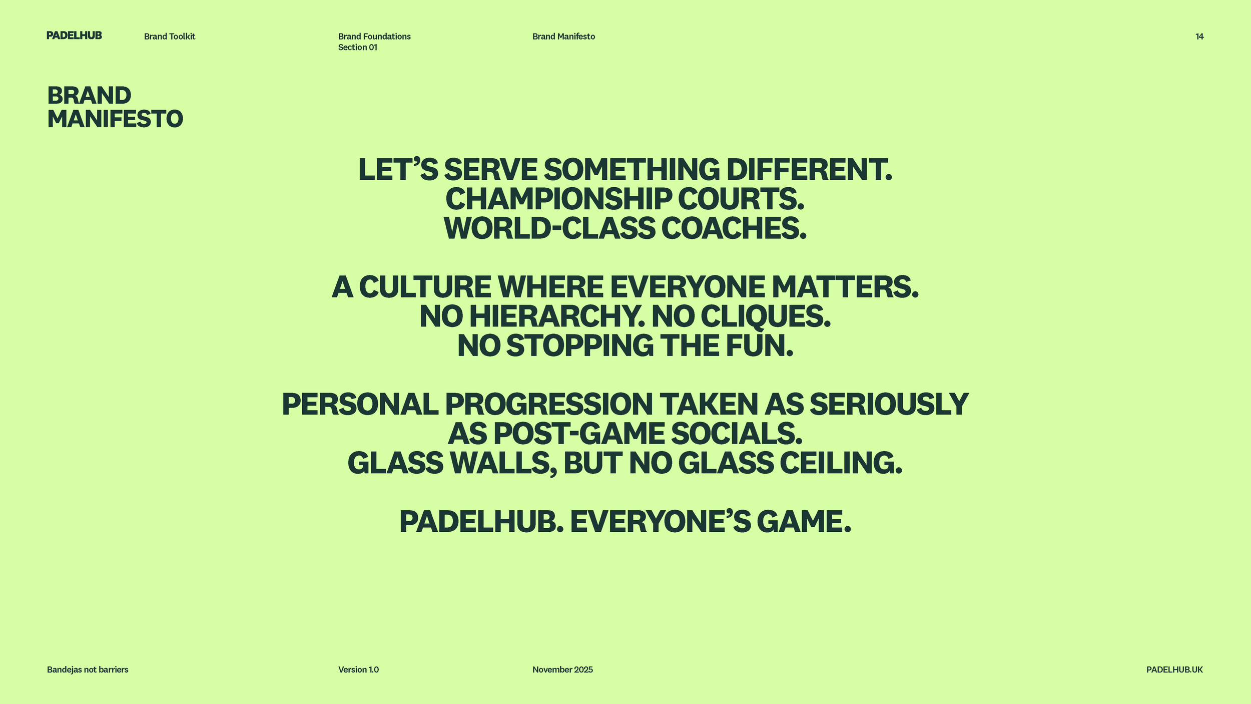 To reflect PADELHUB’s premium offering; from world-class courts to elite coaching, we elevated the brand into a more aspirational and desirable space whilst retaining an inclusive feel. This identity reinforces the value of the experience. Timeless typography, contemporary colour palette and a bold graphic language positions PADELHUB as the go-to destination for padel, for everyone.