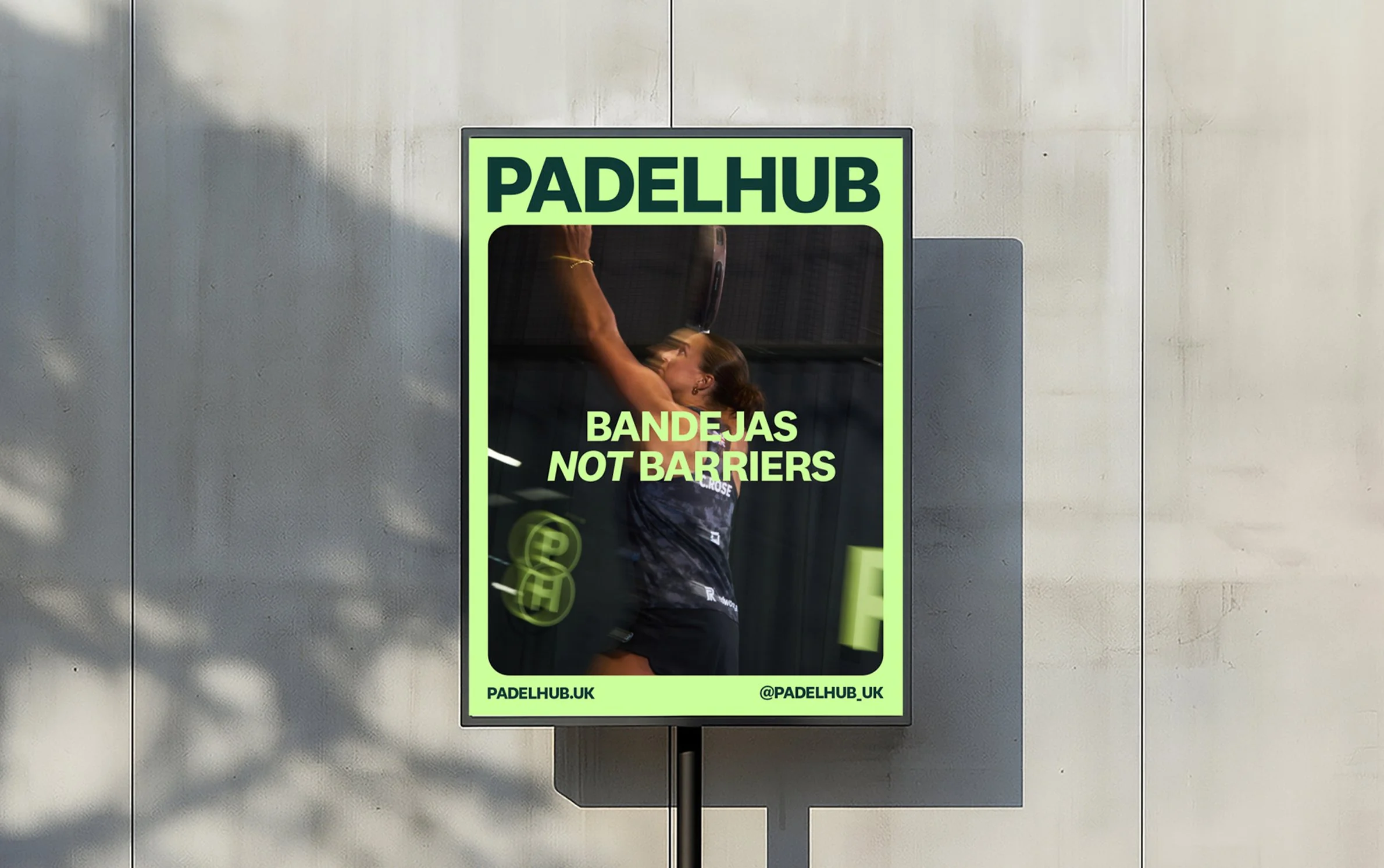 The brief was to rebrand PADELHUB, creating a future-facing identity that will carry the brand forward over the next decade as it grows to become the UK’s leading indoor padel business. The rebrand needed to reflect ambition, inclusivity, and progression positioning PADELHUB not just as a place to play, but as a national destination for the sport as it continues to grow across the UK.