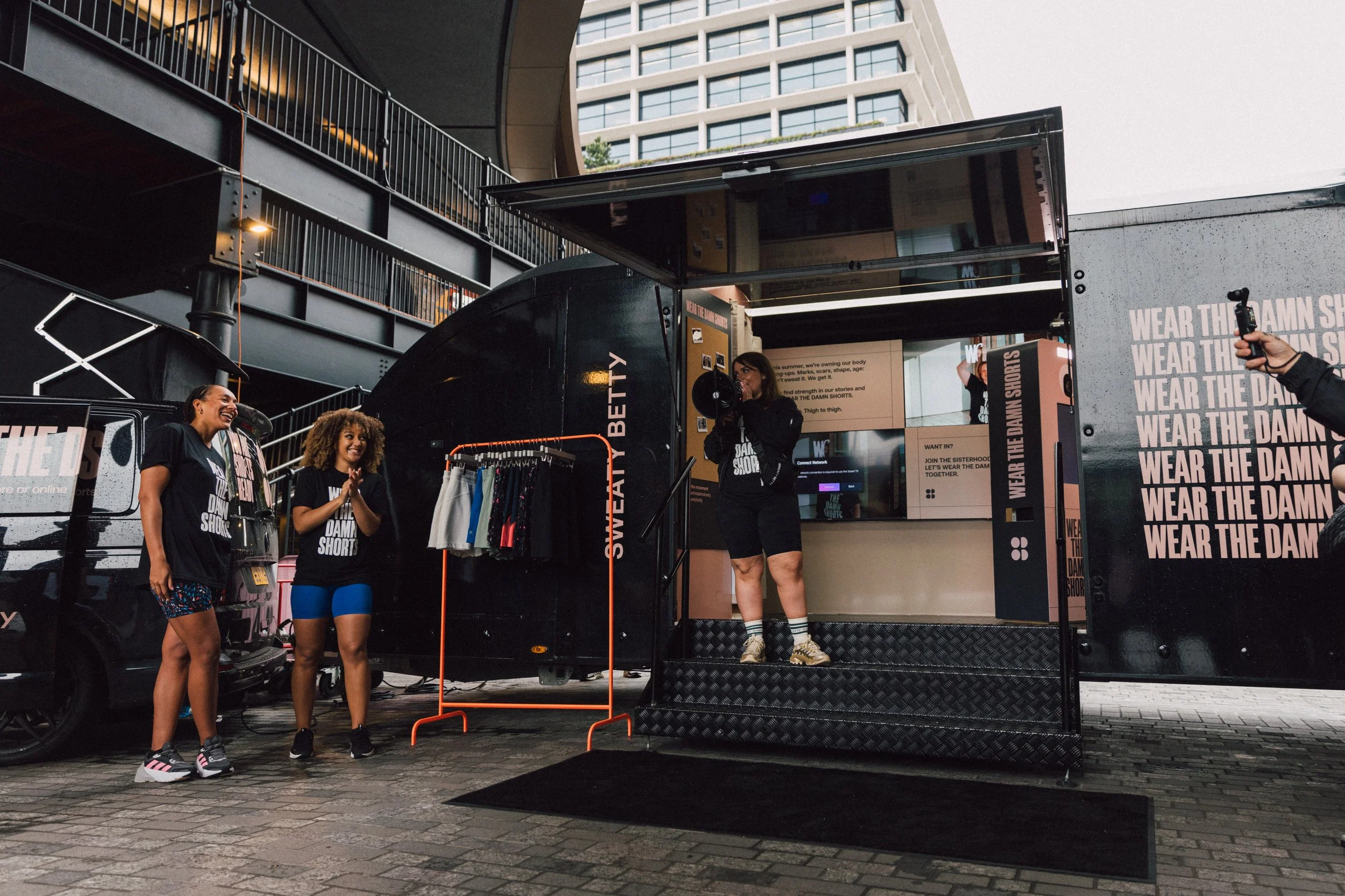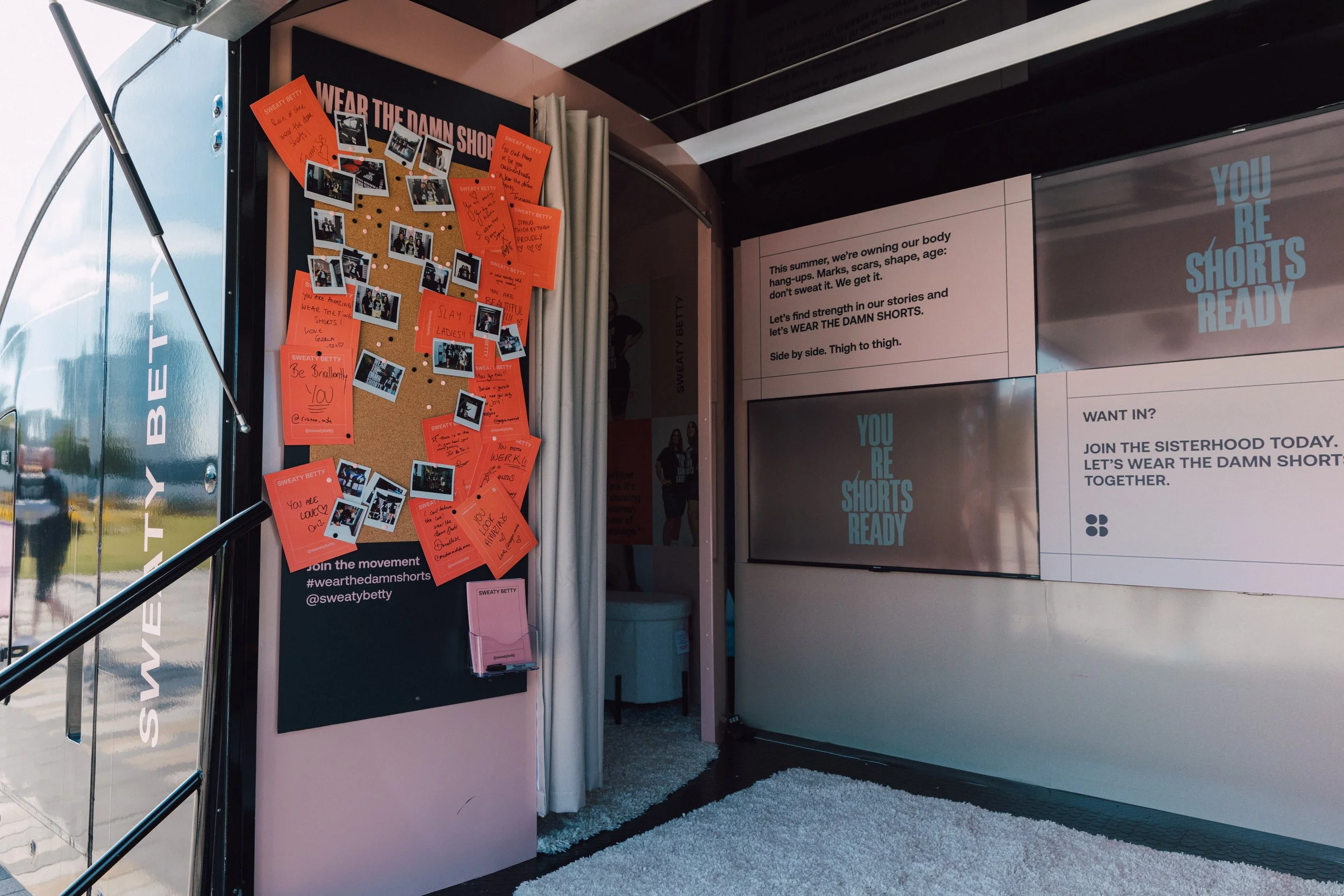The truck featured a bespoke build changing room experience where women could come in and try on new styles of shorts, a photobooth that captured that change and then left our people with a take home. Affirmation cards and pledges were left on the pin wall, motivationally charging our women to feel part of something together.