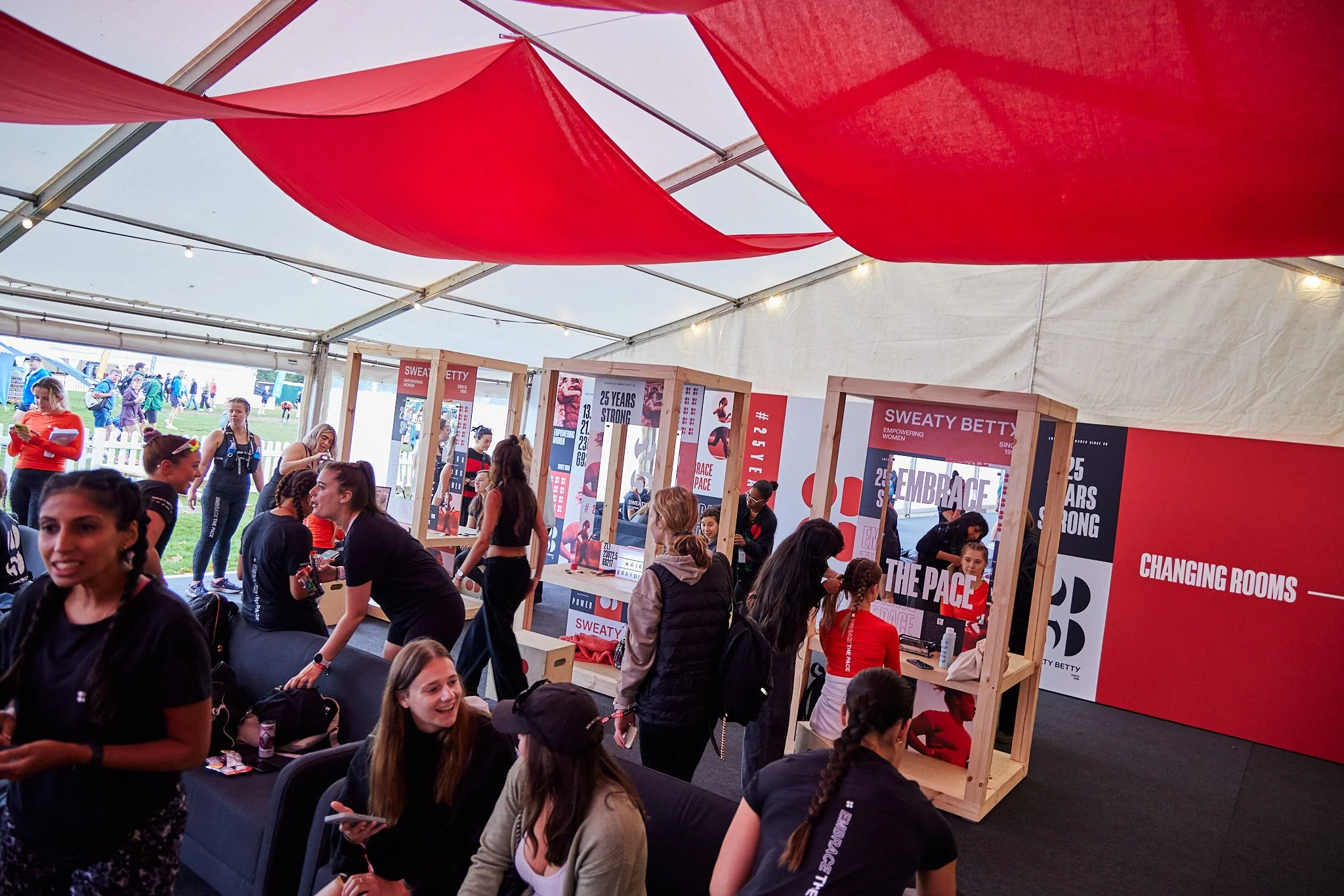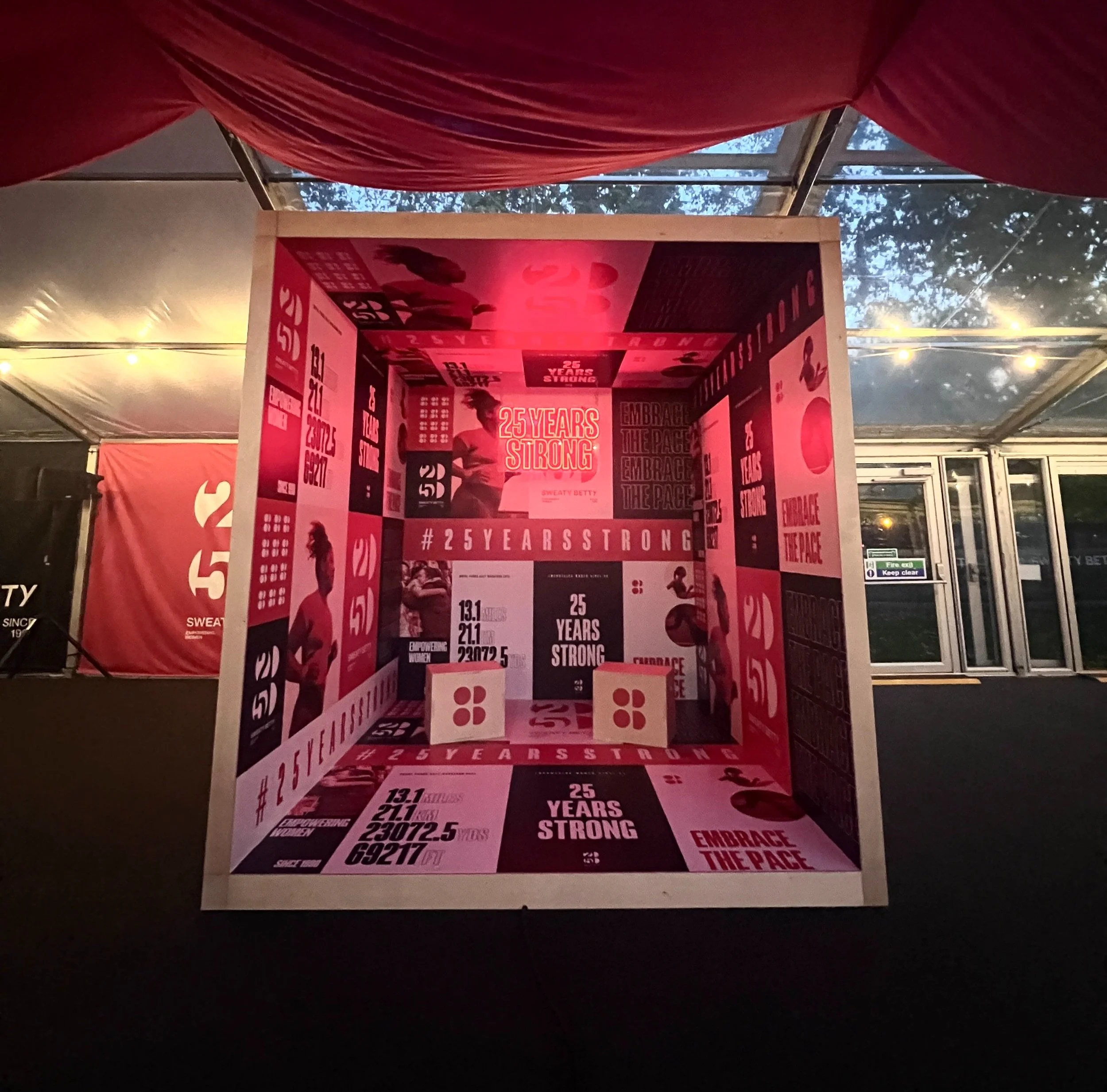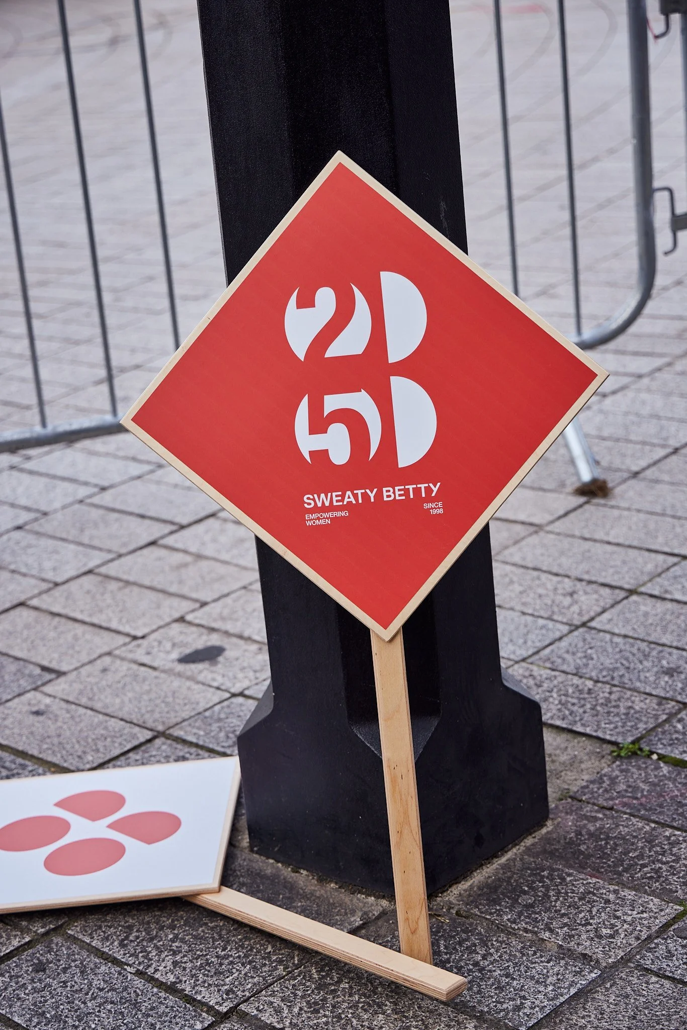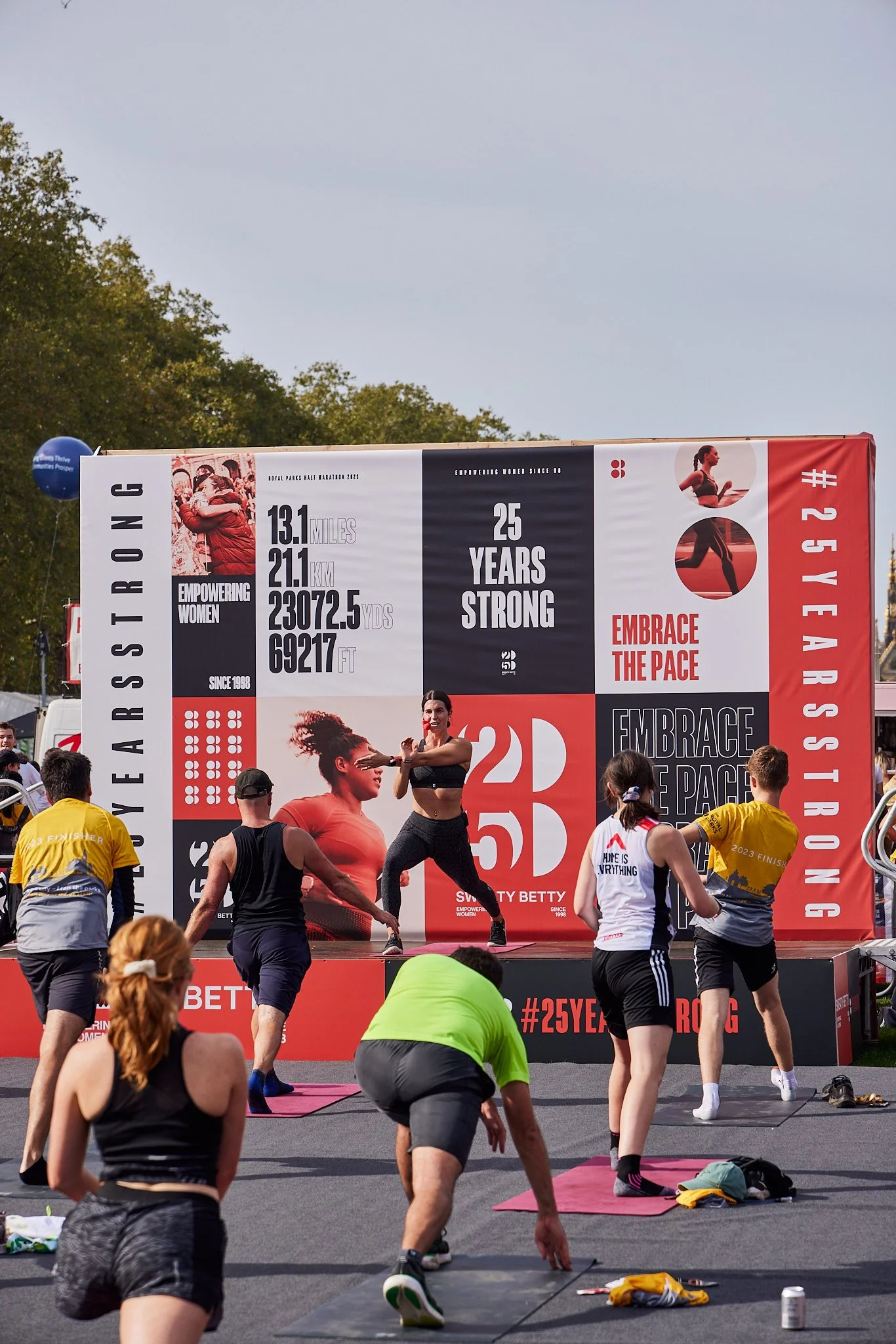 Sessions developed for mass warm up and cool down were built with the Sweaty Betty team at the forefront using the native yoga message they are known for as well as setting people up for a great run. Oversize brand creative tells the 25 Years Strong story for all to see.