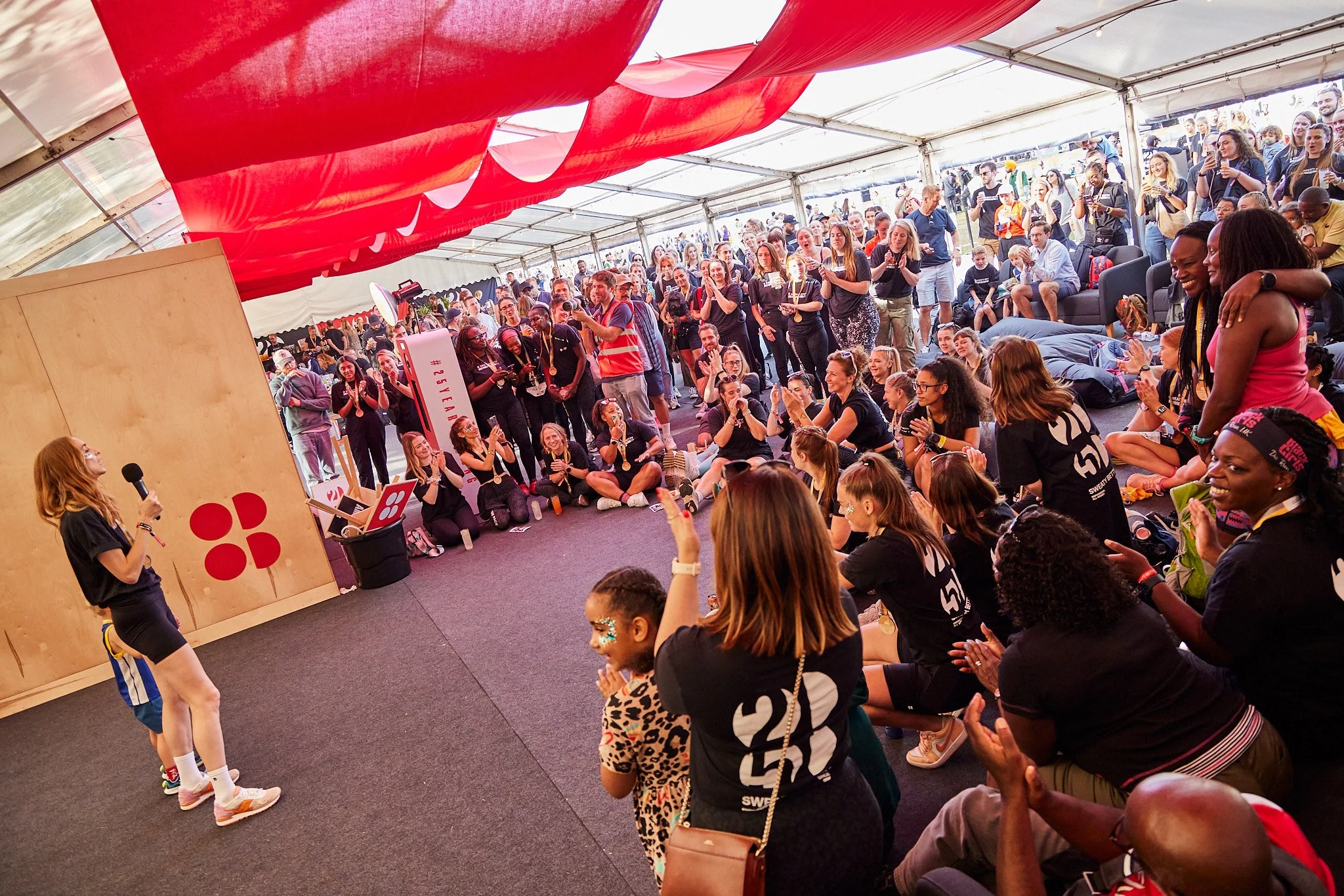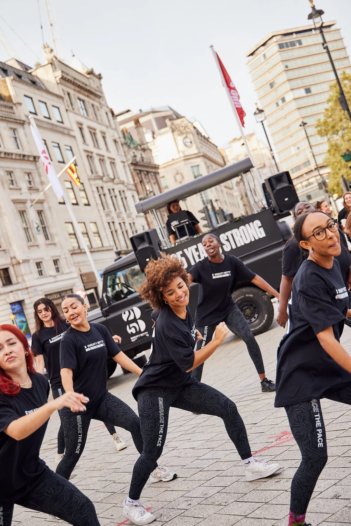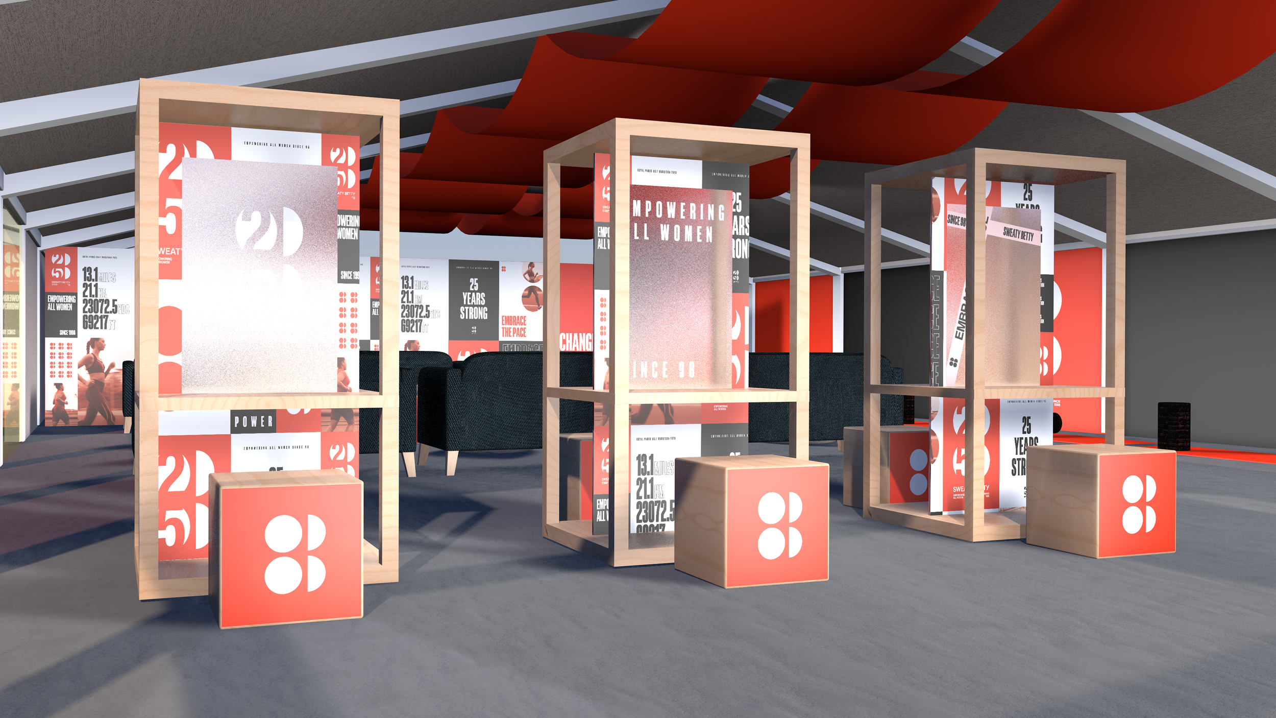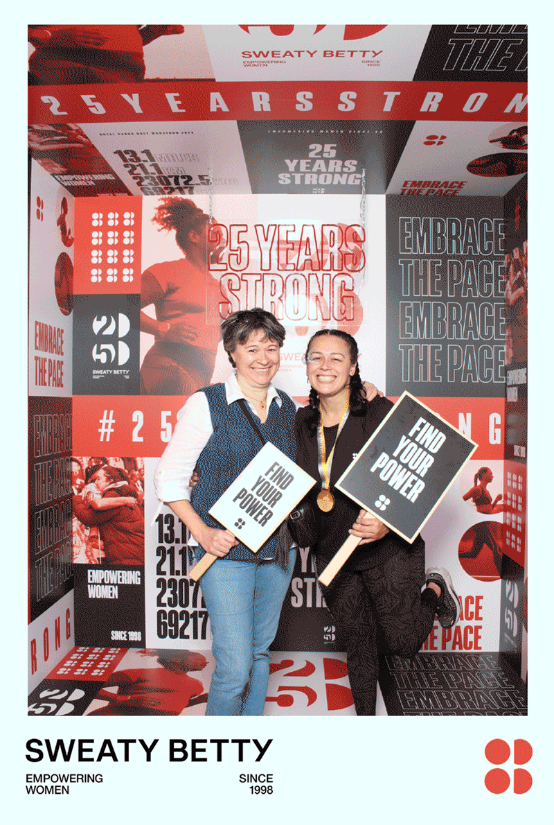 Sessions developed for mass warm up and cool down were built with the Sweaty Betty team at the forefront using the native yoga message they are known for as well as setting people up for a great run. Oversize brand creative tells the 25 Years Strong story for all to see.