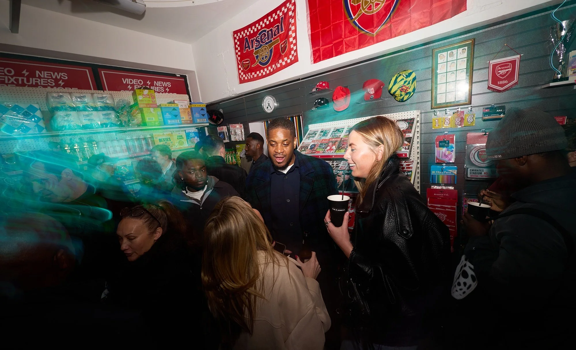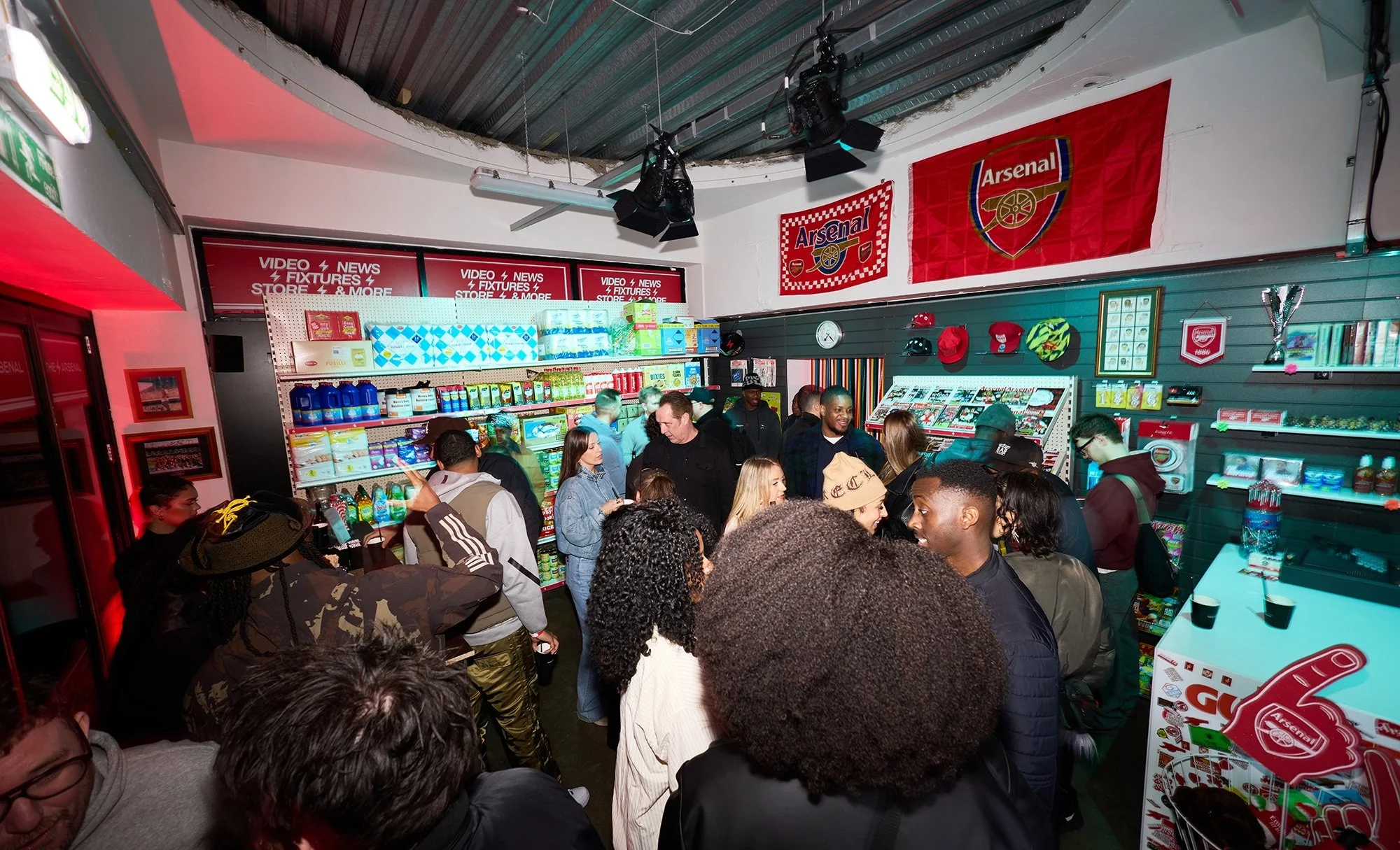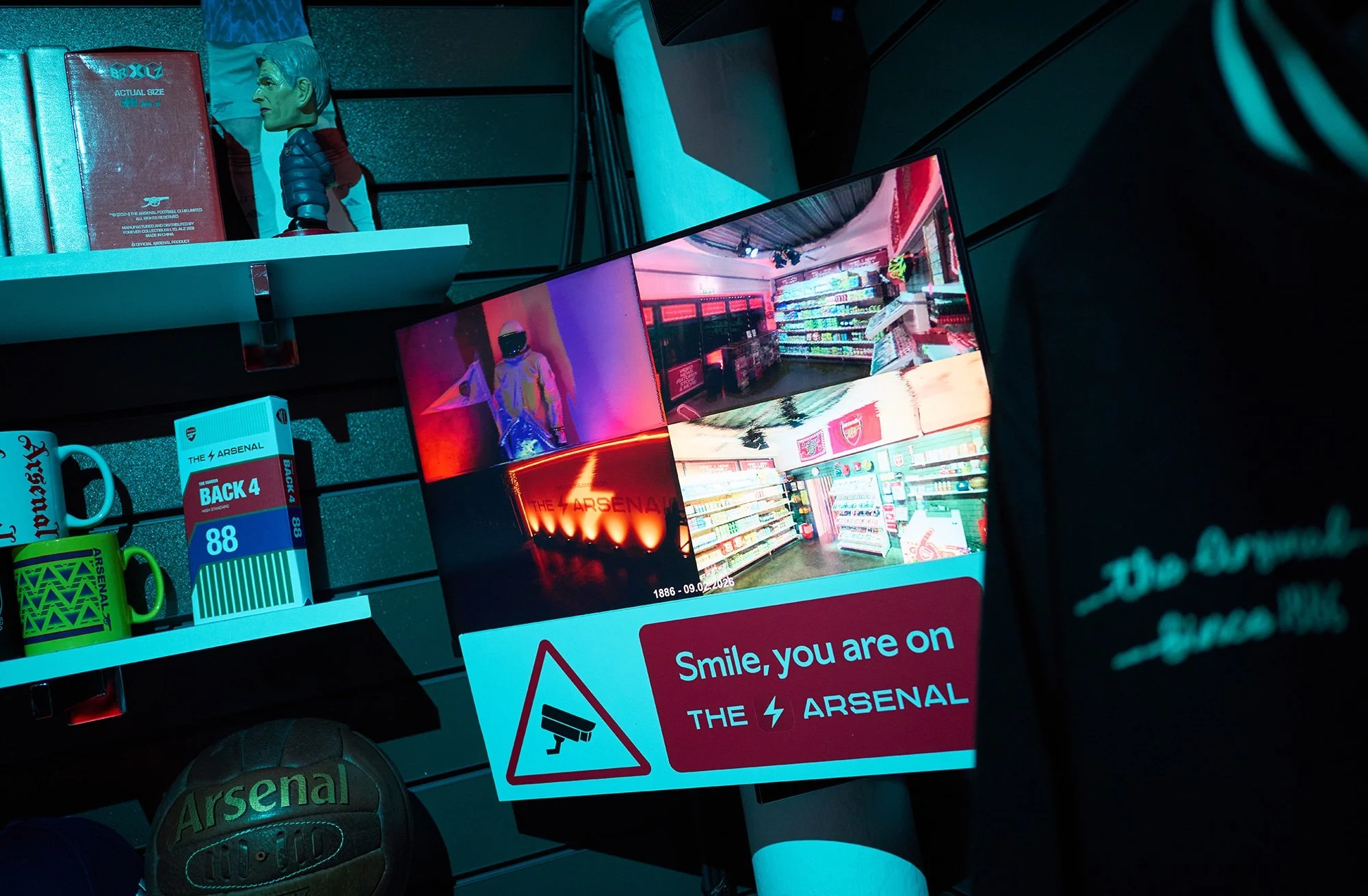 There were clues scattered around, including an astronaut, yes really, as a nod to the campaign film that hadn’t dropped yet. The film itself projected on a wall, just out of reach, with the line, “a corner of Arsenal wherever you are.” The payoff came when guests stepped through a fly curtain into the fully realised Corner Shop. Detailed, immersive, unmistakably Arsenal. Behind the till, David Seaman anchored it all in club heritage. Everywhere you looked, there were little things to spot, product drops, references and Easter eggs, perfect for the curious and the sharers in the room.