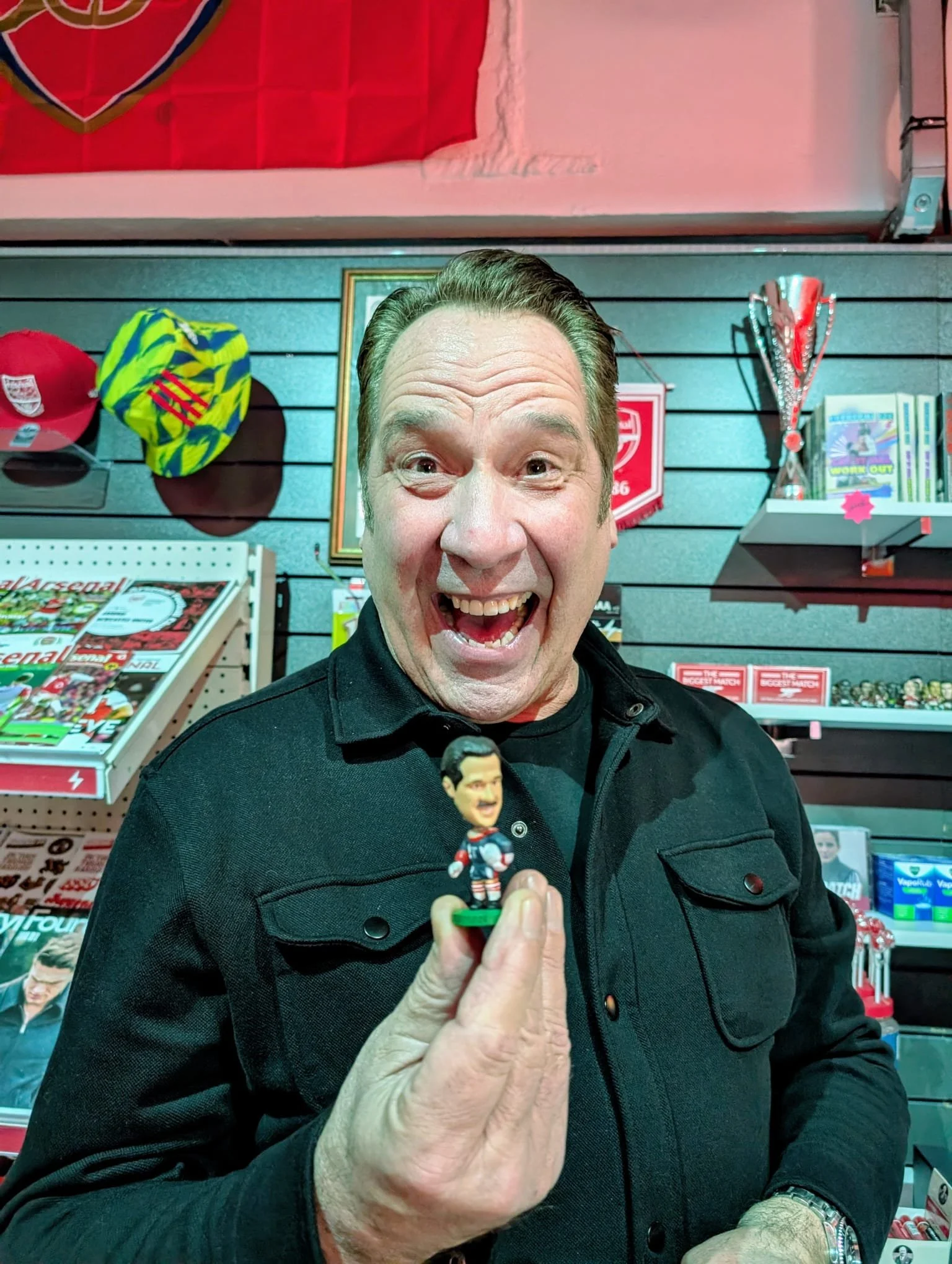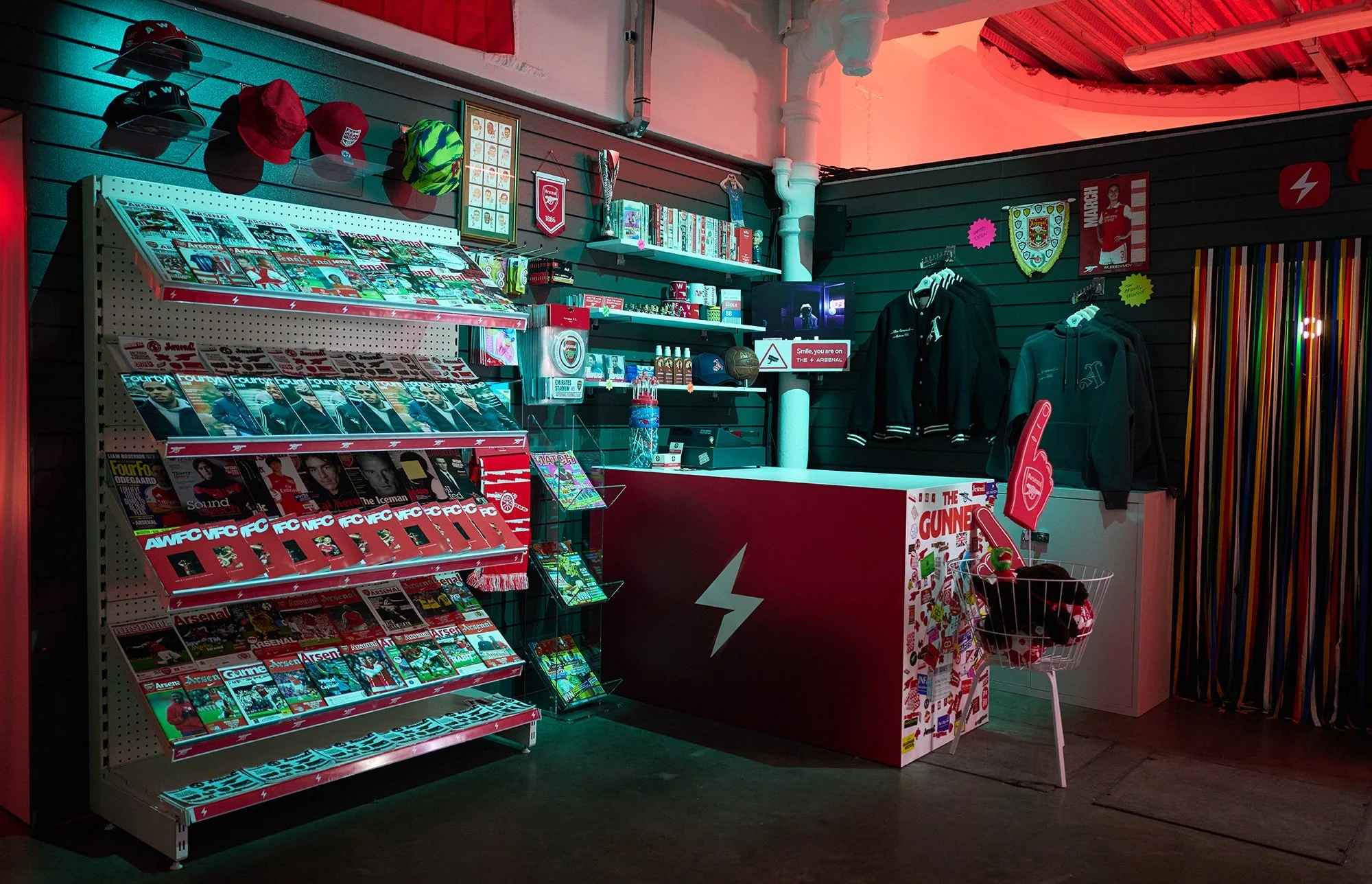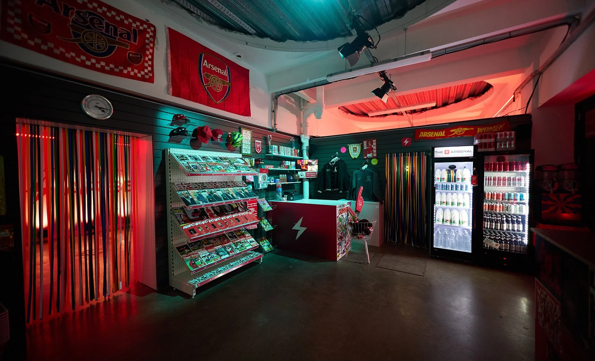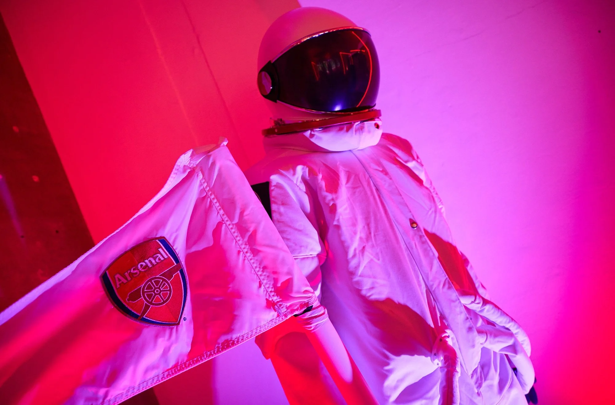 There were clues scattered around, including an astronaut, yes really, as a nod to the campaign film that hadn’t dropped yet. The film itself projected on a wall, just out of reach, with the line, “a corner of Arsenal wherever you are.” The payoff came when guests stepped through a fly curtain into the fully realised Corner Shop. Detailed, immersive, unmistakably Arsenal. Behind the till, David Seaman anchored it all in club heritage. Everywhere you looked, there were little things to spot, product drops, references and Easter eggs, perfect for the curious and the sharers in the room.