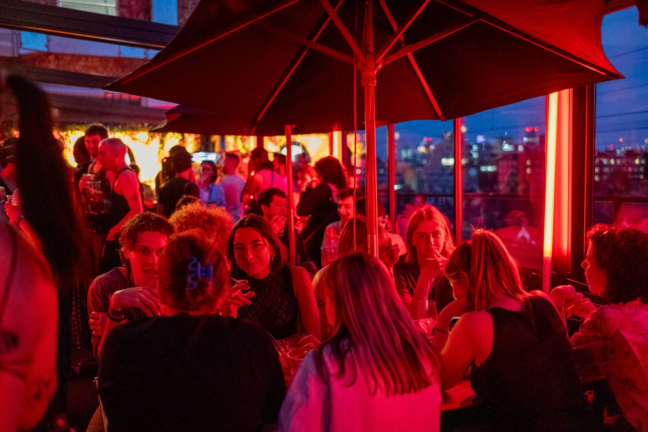 We have rocked up at NT’s with new tables, plants, seating & parasols. Drenching the balcony in Tiempo Red. Turning the daytime summer vibe into a hedonistic night time adventure.